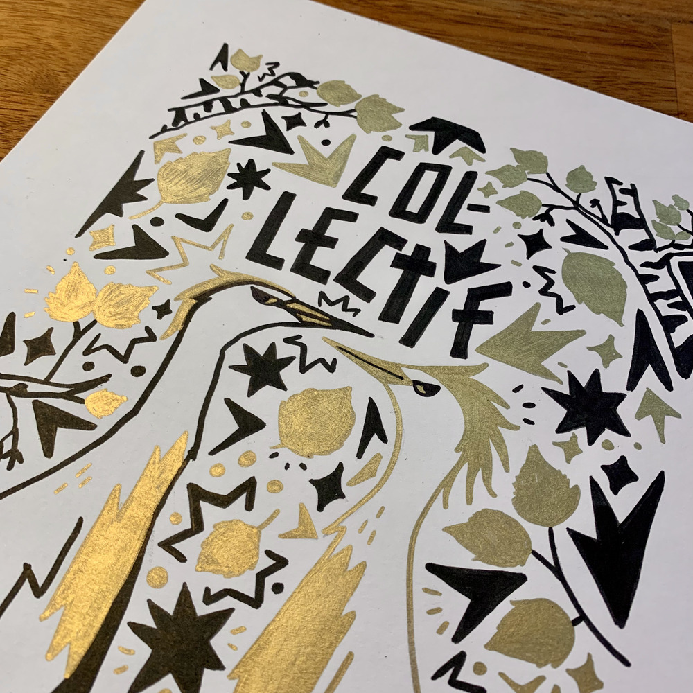 Sur format A4 – Feutre à l’huile noir et feutre à l’huile doré